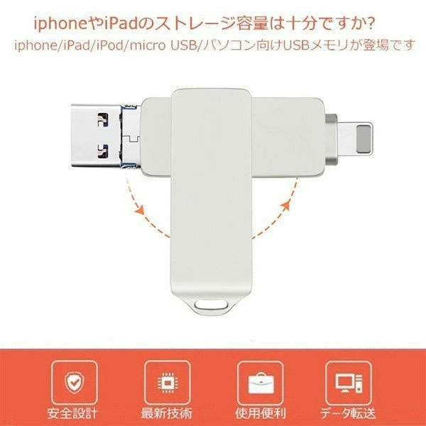 スマホの容量不足をラクラク解消!!Lightningコネクタ搭載で、iPhone/iPad/iPod向けのフラッシュドライブです。