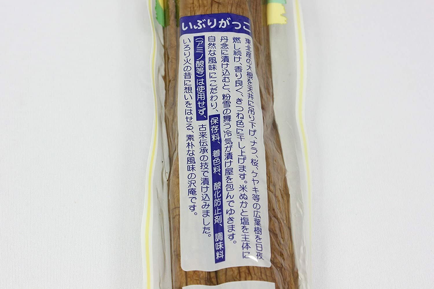 厳選した秋田の大根を原材料に、パリッ!とした食感と、丁寧に燻し上げられた燻製の風味、ジュワっと広がる奥深い自然な甘み、が特徴の美味しいいぶりがっこです。