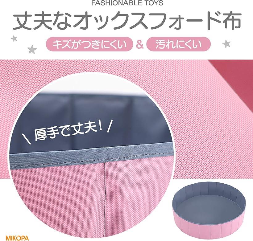 「商品仕様」・カラー:ピングレー・ブルーグレー・ピンクブルー・ピンクグリーン・サイズ:広げた状態(直径120cmx高さ30cm)折りたたんだ状態(31.5cmx16cmx13.5cm)収納袋(約50cmx30.5cm)・重量:1.6kg〇素材:オックスフォード布・セット内容:ボールプール本体、収納袋(色はランダムになります)・ブランド:Mikopa