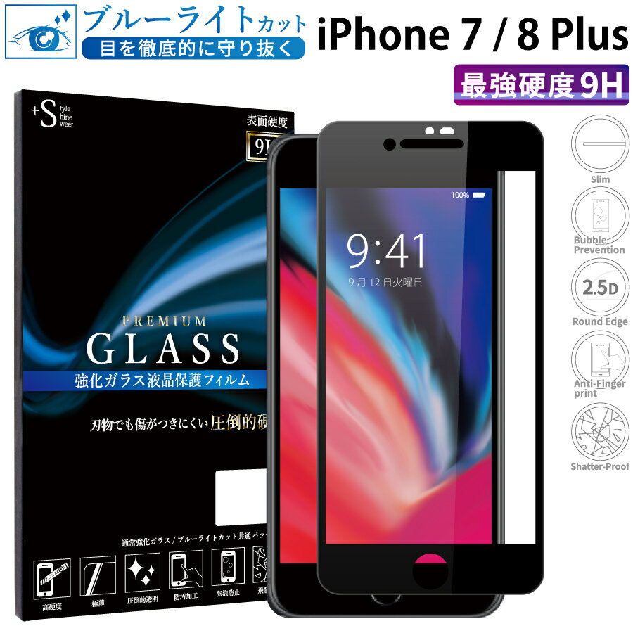 iPhone8 Plus ガラスフィルム ブルーライトカット iPhone7 plus 強化ガラス 全面液晶保護フィルム アイフォン8 プラス アイホン7 プラス フルカバー 全面 目に優しい 液晶保護 画面保護 TOG RSL