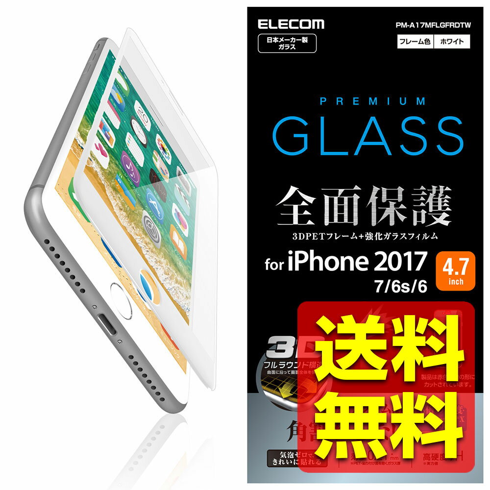 iPhone8 / iPhone7 / iPhone6s / iPhone6 フィルム フルカバー ドラゴントレイル 【PETフレーム採用で角割れを防止】 ホワイト アイホン アイフォン アイフォーン 液晶保護 フルカバー 強化ガラス PM-A17MFLGFRDTW / ELECOM エレコム 【送料無料】