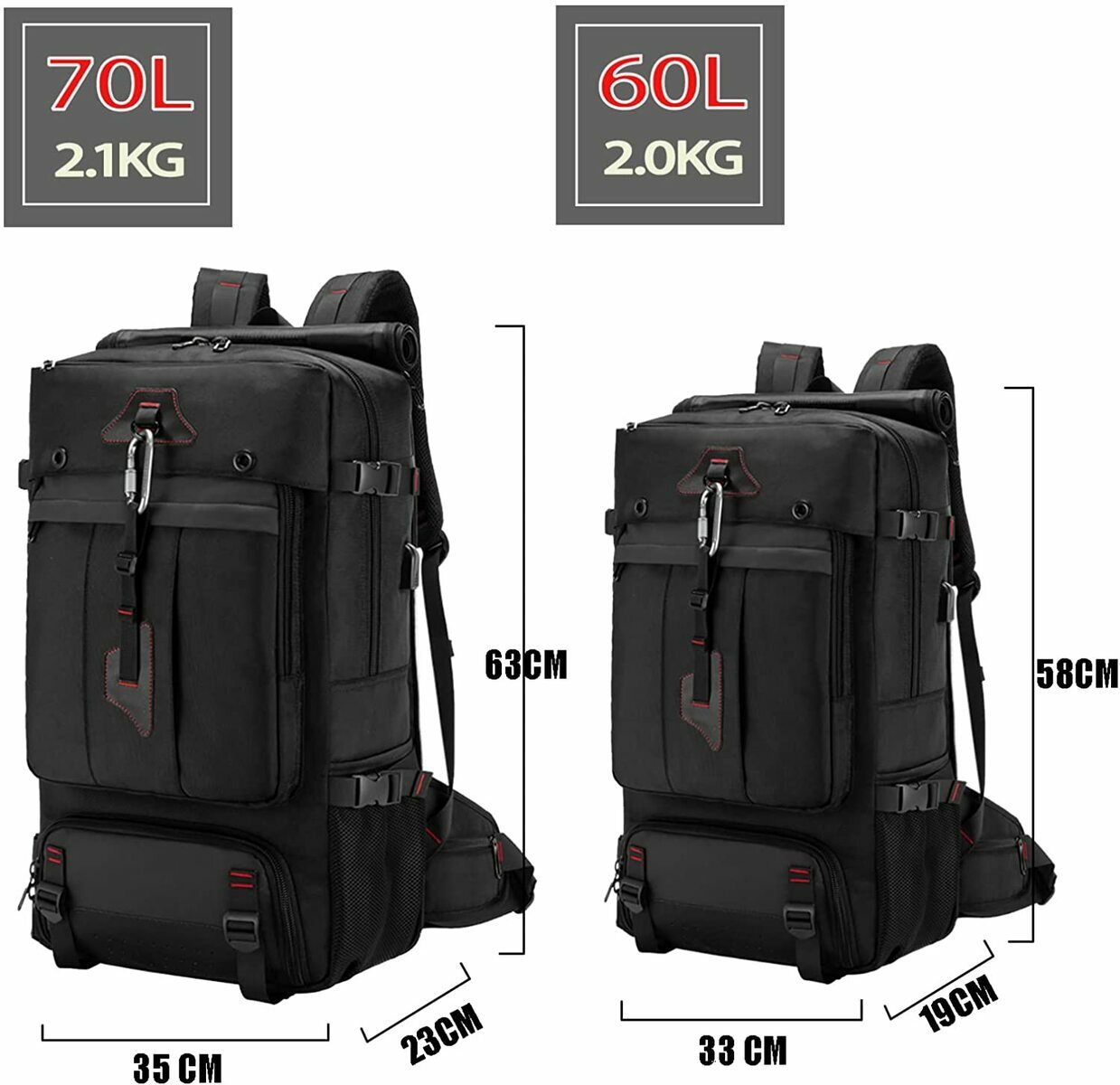 登山リュック 70L 大容量 ファスナー リュックサック バックパック 17インチPC リュックサック スクエア 防水 ハイキング用 ハイキング キャンプ アウトドア 防災 旅行 スクエア型収納力抜群 【大容量の70L防水リュックサック】サイズ:約縦58cm × 横33cm × マチ19cm、収納可能サイズ: 70L(物でいっぱいのすべてのポケット)、重さ:2.0Kg。