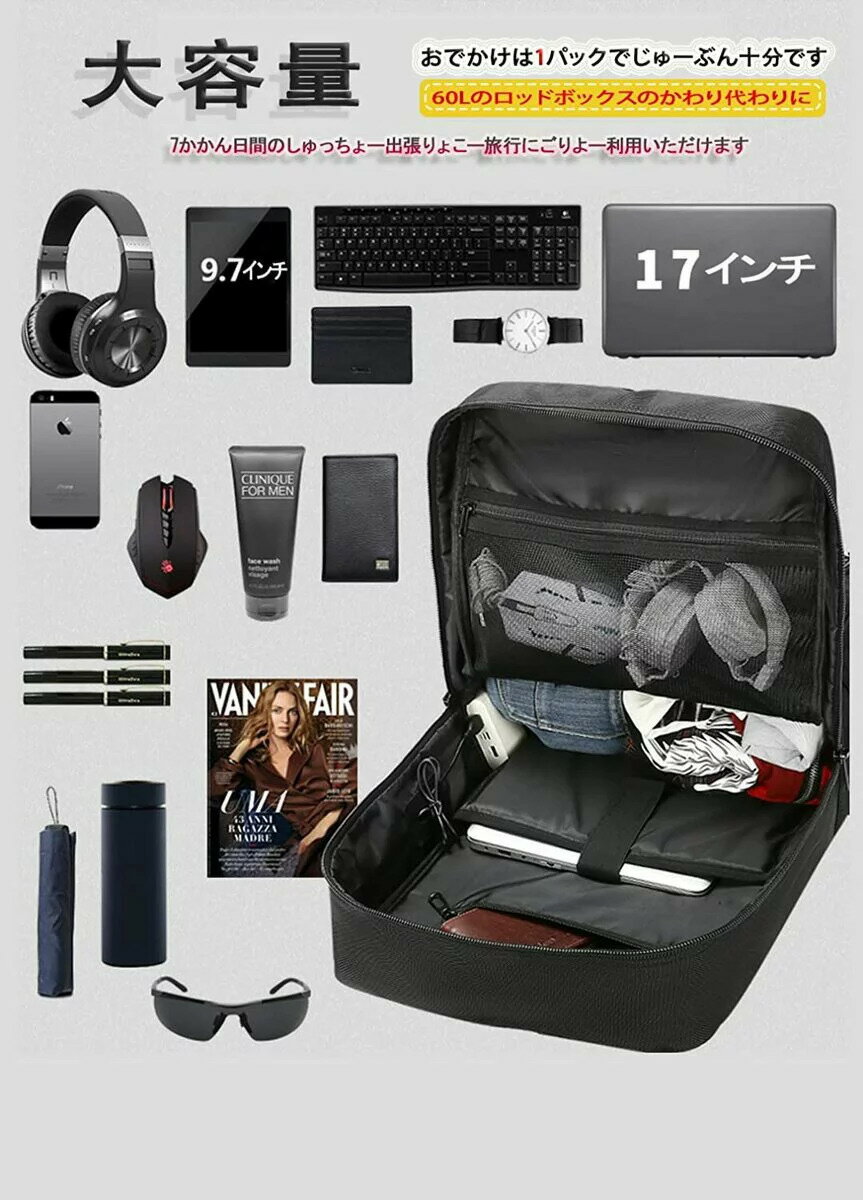 商品情報素材高密度オックス フォードクロスサイズ縦63cm×横35cm×マチ23cm重量2.1KG収納可能サイズ70L(物でいっぱいのすべてのポケット)スクエア型収納力抜群最大17インチPC、サングラス、テント、モイスチャーパッド、寝袋、トレッキングポール、衣類、登山靴、傘、iPad、ラップトップ、カップ、シャンプー、歯ブラシ、洗顔料、救急箱、ロープ、食べ物など、日用品をすべて収納できます。