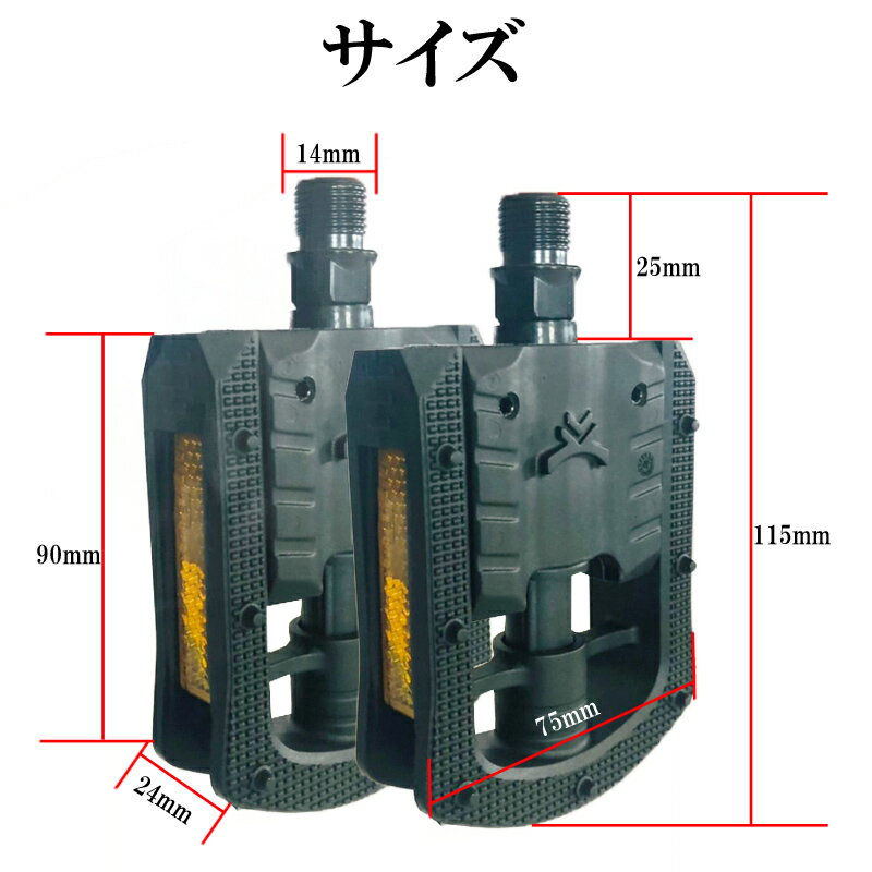 折りたたみ式ペダル ペダル ブラック折りたたみ式ペダル 自転車 自転車用品 自転車部品 高品質 リフレクター(反射板)付き フラットペダル 折りたたみ コンパクト 耐久性 ロードバイク クロスバイク ミニベロ ママチャリ ペダル交換 左右セット アルミ合金 スチール