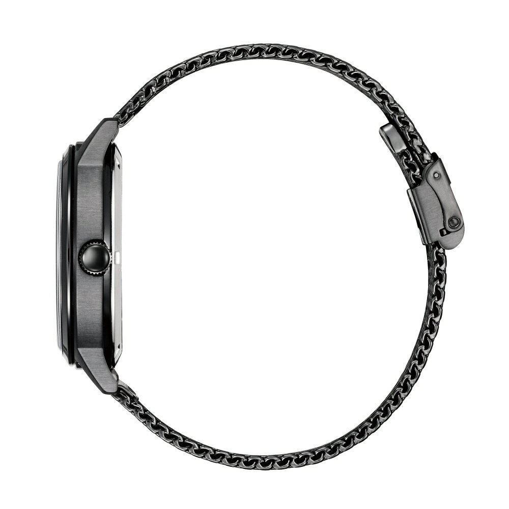 オールブラックモデルは、メッシュバンドを採用し、時計としてはもちろん、アクセサリー感覚で着用できます。