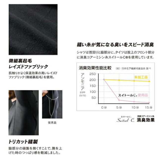 空気層を挟んだ2層構造に微細起毛と遠赤外線加工をプラスした、トリプル保温のコンプレッションウェア。