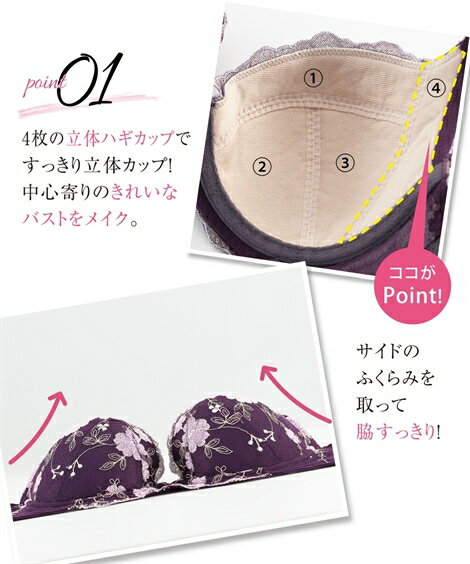 原産国 中国製 メーカー品番 ZZY4319B7057 コメント 4 枚の立体はぎカップで脇がすっきり、中心寄りのきれいな丸胸バストをメイク。