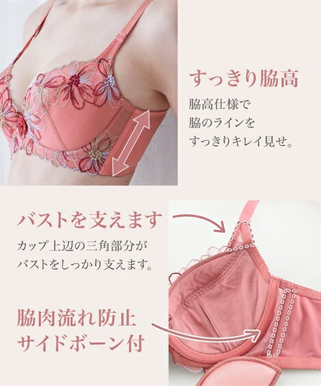 他のサイズは以下をご覧ください A70_M〜F80_L はこちら脇高刺しゅうレースブラジャー・ショーツセット(コスモス)(トリンプ) ニッセン nissen 黒 ネイビー ピンキーオレンジ クリーム アンティークピンク カスケードブルー カラー 黒/ネイビー/ピンキーオレンジ/クリーム/アンティークピンク/カスケードブルー サイズ C85/L~LL/C90/LL~3L/C95/3L~4L/D85/LL~3L/D90/LL~3L/D95/3L~4L/E85/LL~3L/E90/3L~4L/E95/3L~4L/F85/LL~3L/F90/3L~4L/F95/3L~4L/G85/LL~3L/G90/3L~4L/G95/3L~4L 素材 品質=[ブラジャー]ポリエステル・ナイロン・その他 [ショーツ]身生地:ポリエステル90%・ポリウレタン10% 3/4カップ ワイヤー・サイドボーン入り 後ホックアンダー80までは2段3列 85以上は3段3列 パッド入り(取り外し可) アンダー85以上はパッドなしパッドポケットなし 柄が多少異なる場合があります。