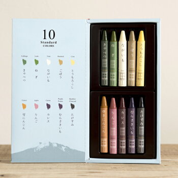 ・成分:ライスワックス、野菜粉末、食用色素 ・サイズ:W111×D174×H29mm ・内容色(10色):きゃべつ、ねぎ、ながいも、ごぼう、とうもろこし、雪にんじん、りんご、カシス、紫いも、竹炭 ・生産国:日本おやさいクレヨン スタンダード /クレヨン/お野菜クレヨン/ ・国産の「お米」と「野菜」からできている、万が一口に入れても安心なクレヨンです。