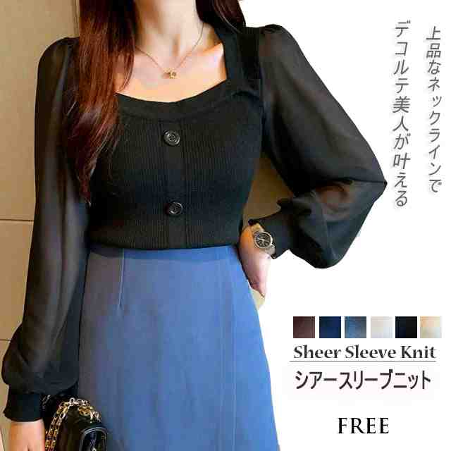 レディース スクエアトゥネック リブニット プルオーバー ニット 日常【大きいサイズ レディース パーカー 無地 夏秋 チュニック 薄手 スウェット シャツ ブラウス pullover parker】