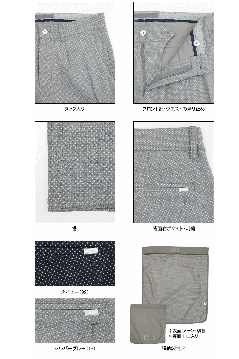 【あす楽】TRATTO トラット メンズパンツ ゴルフウェア ドット柄 ストレッチパンツ 暖かい