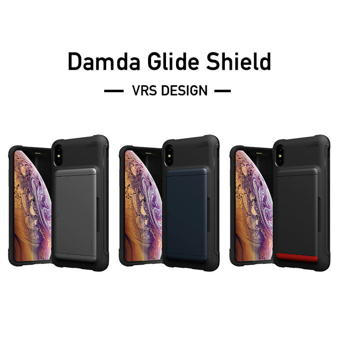 iPhone Xs Max ケース カード 収納 耐衝撃 衝撃 吸収 背面 カード ホルダー 2枚 ハイブリッド カバー 衝撃に強い 落下に強い カードケース Qi ワイヤレス 充電 対応 Apple iPhoneXs Max アイフォンXs Max アイフォンXsマックス VRS DESIGN Damda Glide Shield お取り寄せ