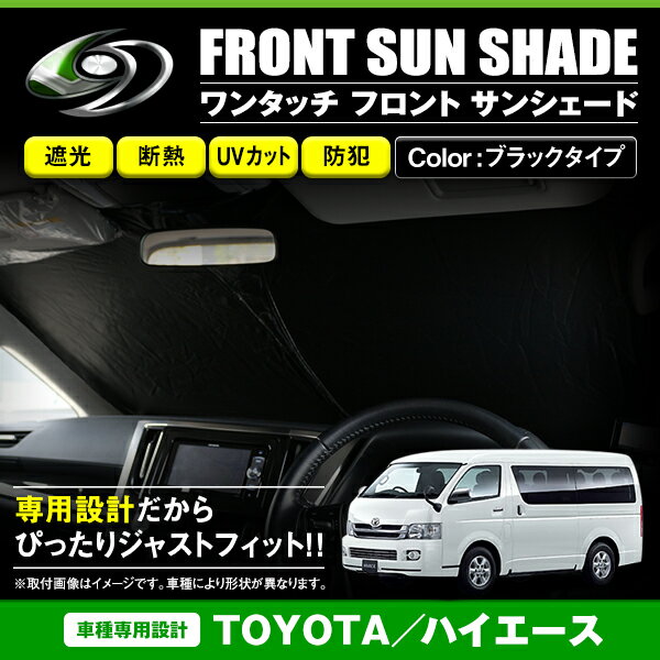 【送料無料】 ワンタッチ 折り畳み式 フロント サンシェード トヨタ ハイエース 200系 ワイド ブラック×ブラック フロントガラス 日よけ 遮光 2重仕様