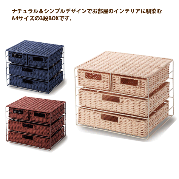 商品情報 ペーパーA4サイズ3段BOX 毎日を楽しくする人気素材ペーパーを使用したA4サイズの3段BOXです。