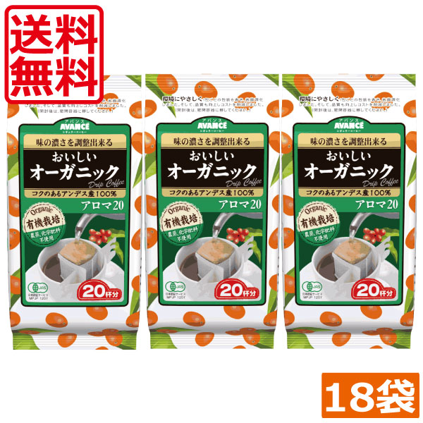 アバンス アロマ20 おいしいオーガニックドリップコーヒー ×18袋 大容量 節約 お徳用パック 国太楼 オーガニック AVANCE