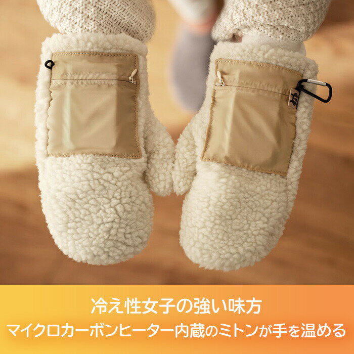 『レビュー投稿で選べる特典』 「充電式 ボアミトン nuku2」電気式 充電式 ぬくぬく ヌクヌク カイロ 手袋 ボア もこもこ かわいい 可愛い コードレス USB 冷え性対策 オフィス 布団 温活 保温 防寒 アイボリー EWT-2151