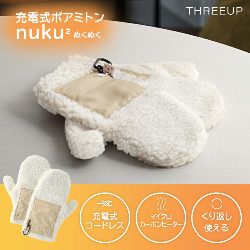 〔レビュー投稿で選べる特典〕 「充電式 ボアミトン nuku2」電気式 充電式 ぬくぬく ヌクヌク カイロ 手袋 ボア もこもこ かわいい 可愛い コードレス USB 冷え性対策 オフィス 布団 温活 保温 防寒 アイボリー EWT-2151