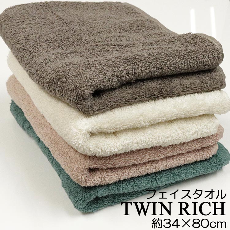 ツインリッチ フェイスタオル 約34×80cm タオル TWIN RICH ふわふわ スーピマ綿 新疆綿 無地 シンプル