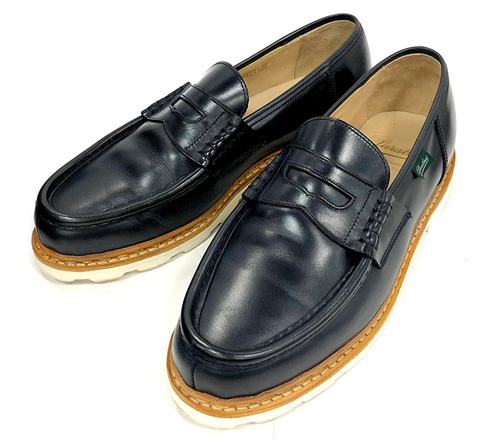 ▼【Paraboot】パラブーツ REINS ランス MARCHE コインロファー サイズ7F ブラックネイビー メンズ シューズ 靴 RA5497【中古】