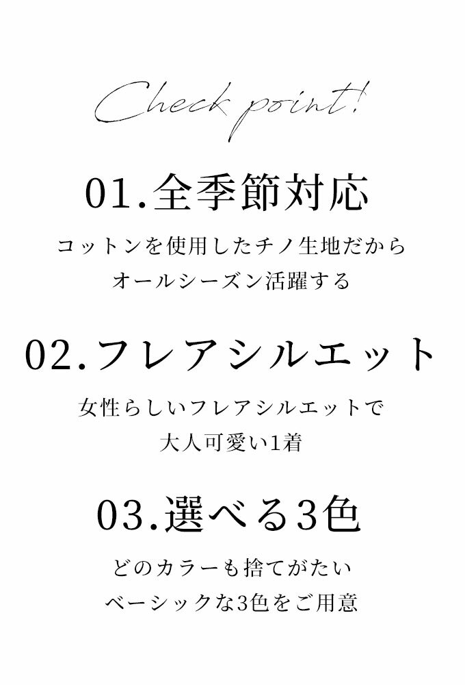 伸縮性のあるチノ生地で肌触りもよく年中着用出来るので季節に合ったコーデが楽しめそうです。
